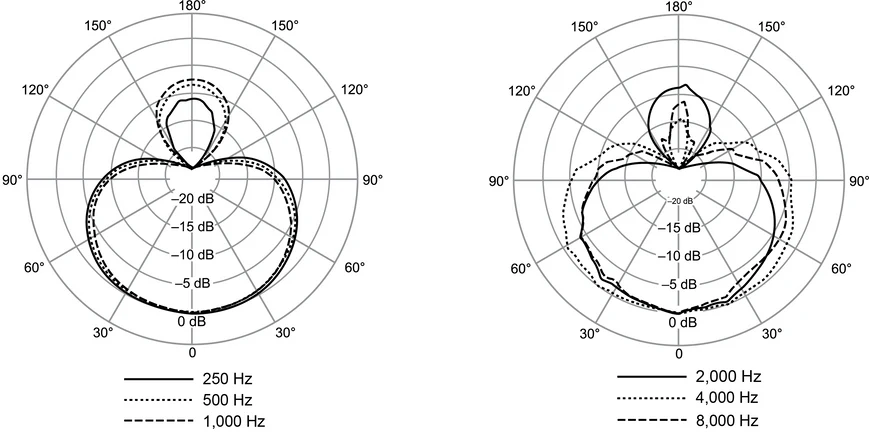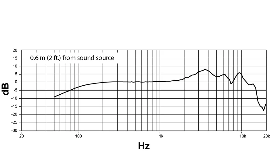 Captação focada na voz, com alta rejeição de sons laterais e traseiros — ideal para palcos com alto volume.