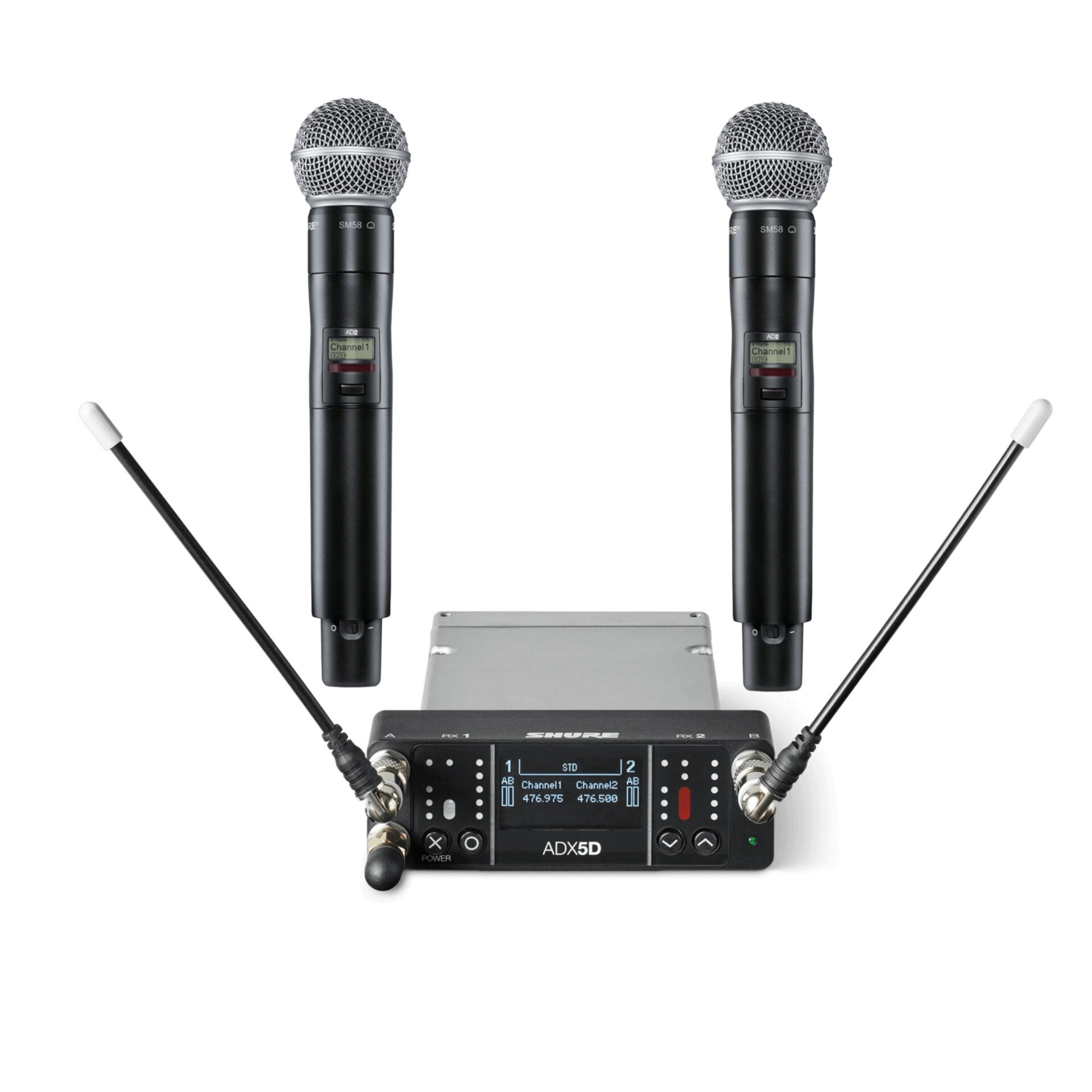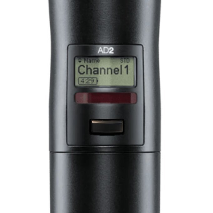 Este sistema entrega a potência do Axient Digital em formato portátil, com 2 microfones bastão AD2/SM58 já equipados com RPM650 Talkback, pronto para aplicações de palco, broadcast, igrejas premium e produções móveis.